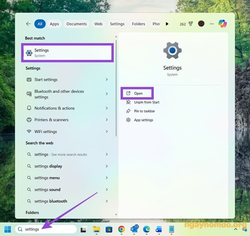 Bước 3. Bây giờ, hãy đóng ứng dụng Notepad và mở phần cài đặt. Mẹo nhỏ: Ngoài việc tìm kiếm cài đặt từ thanh tác vụ Windows, bạn cũng có thể nhấn đồng thời phím Windows và phím “I” để truy cập nhanh vào khu vực này.