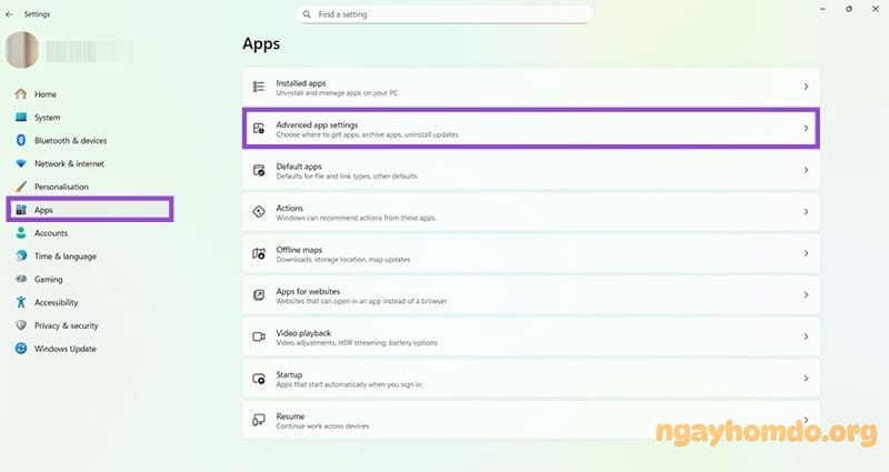 Bước 4. Sau khi nhấp vào “Settings” > “Open“, hãy chọn “App” rồi tiếp tục nhấp vào “Advanced app settings.“.