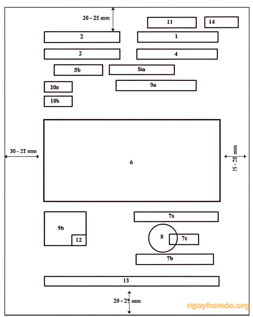 - Lề trên (Top): Cách mép trên từ 20 – 25 mm (2cm – 2.5cm).